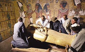 考古人員1922年在埃及南部金斯河谷墓穴發現圖坦卡蒙法老木乃伊。當時木乃伊身上遍鋪珠寶飾物,還有一張做工精美的金面具。研究人員對圖坦卡蒙法老和其他數具木乃伊實施DNA檢測和電腦斷層掃描后認定,圖坦卡蒙的祖父是阿蒙霍特普法老三世,父親是埃赫那頓法老,后者因改革古埃及眾神崇拜傳統、強制推行太陽神“一神獨尊”而著名。