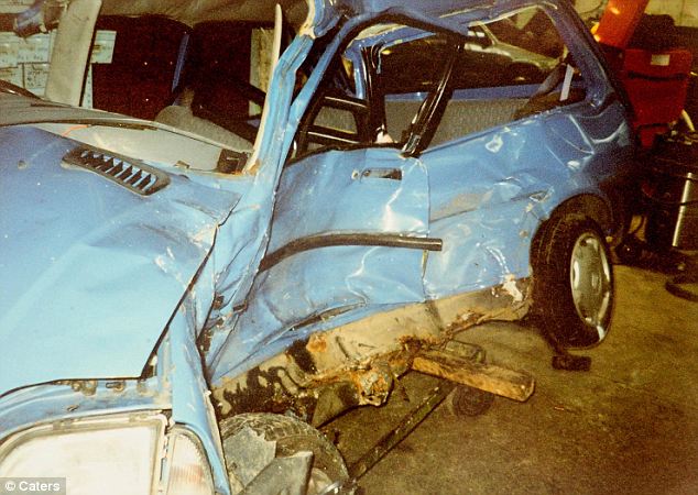 羅伯茨車禍時開的車輛嚴重變形。