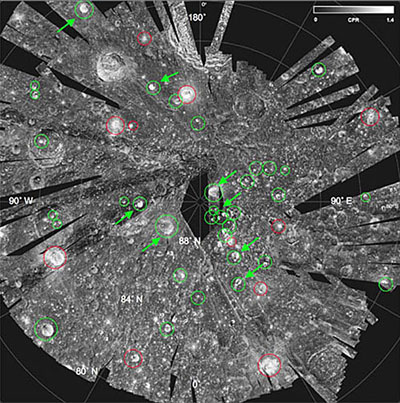 這些被發現有水冰的隕坑大多數都是從來無法受到太陽的光照,永遠在黑暗的籠罩下。一些永遠處于黑暗的隕坑的溫度最低可達零下248攝氏度,比冥王星的表面還冷,這樣才會保持水冰的冰凍狀態。