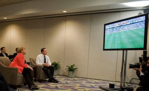 報道稱,卡梅倫和默克爾離開了其他與會領導人,與手下一同觀看英德下半場比賽。結果德國隊又進兩球,以4-1大勝英格蘭隊。