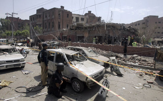 爆炸發(fā)生地是拉合爾的商業(yè)區(qū),一些鄰近建筑也受到爆炸影響。一座加油站頂棚坍塌,一家醫(yī)院屋頂坍塌導(dǎo)致20人受傷,情報(bào)署的辦公樓也受到嚴(yán)重?fù)p壞——目前,一些軍人進(jìn)入其中監(jiān)督搜救工作。