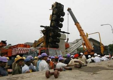 此前一天,該處地鐵施工工地發生高架橋坍塌事故,造成6人死亡、15人受傷。一天后,在該事故清理現場又發生了起重機倒塌事故,造成4人受傷。