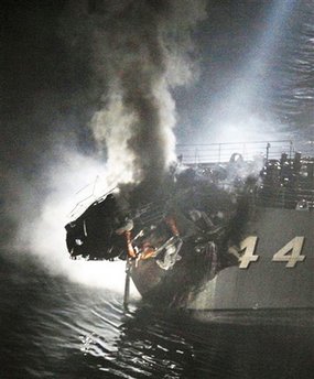 中新網10月28日電 據日本共同社報道,有關日本海上自衛隊“鞍馬”號護衛艦在北九州市門司區附近關門海峽與韓國集裝箱貨船相撞的事故,韓國船長28日在接受門司海上保安部門調查稱,貨船是為超越前方的另一艘船而撞上了迎面駛來的護衛艦。