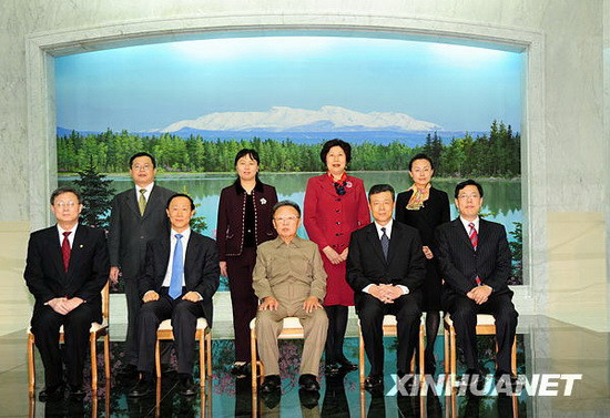 金正日首先與代表團合影留念。他請王家瑞轉達對胡錦濤總書記等中國黨和國家領導人的親切問候,并熱情地向中國人民拜年。他說,去年是朝中建交60周年,雙方圍繞“朝中友好年”所舉辦的一系列交流活動,向世人、特別是兩國年青一代展示了朝中友誼的旺盛活力。當前雙邊關系很好,今后會發展得越來越好。