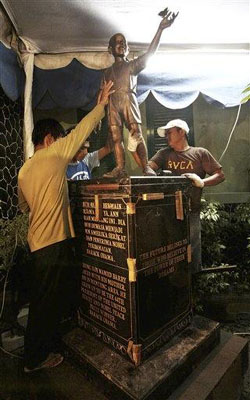 報道稱,銅像此前安放在雅加達的一座公園,但由于遭到公眾的反對才被重新安置在他曾經就讀過的學校,校方的領導和當地的教育官員為這座銅像舉行了簡短而又低調的揭幕儀式。