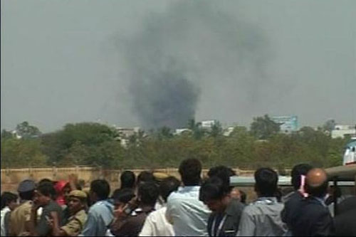 在印度海得拉巴3日開幕的航展上,這架海軍飛機起飛不久就墜入航展現(xiàn)場旁邊一個人口稠密的居民區(qū)。一棟3層高的樓房受損嚴(yán)重,周圍其它建筑也遭到不同程度損傷。