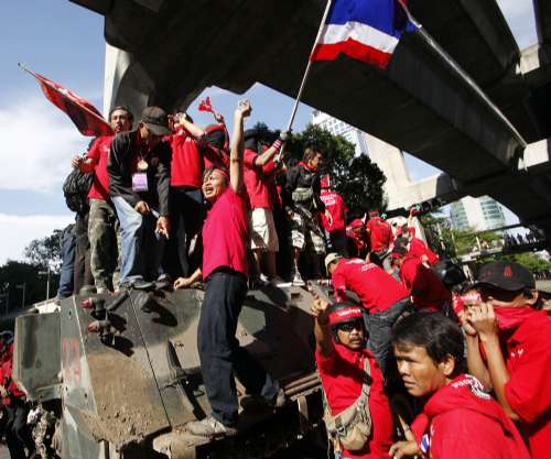 泰國最高法院最近裁定充公他信逾半資產(chǎn),惹來他信的支持者強烈反對。反獨裁民主聯(lián)盟(UDD,俗稱“紅衫軍”)計劃動員百萬民眾,星期五開始在曼谷周邊地區(qū)集合,之后再在曼谷市內(nèi)多處,包括皇家田廣場和國會大樓前,舉行百萬人反政府集會和示威。紅衫軍領(lǐng)袖聲言集會會以和平方式進(jìn)行,目標(biāo)是三日內(nèi)迫使總理阿披實解散國會,重新大選。他們更表示,剛頒布的國內(nèi)安全法不會阻止他們的活動。