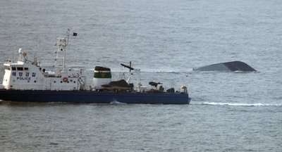 韓國海軍和海警消息人士表示,在攝氏8至10度的水溫中,落水者通常可以存活3個(gè)小時(shí),其后便兇多吉少,為了搶救更多人命,海軍正徹夜全力搜索。
