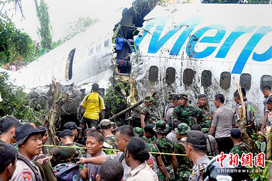 中新網4月14日電 據香港《文匯報》14日報道,印度尼西亞鴿記航空一架載有103名乘客的波音737-300內陸客機,昨日在東部西巴布亞省降落時滑出跑道,墜河解體斷開兩截,造成最少78人受傷。目擊者稱,飛機左翼斷掉,機頭幾乎裂開。事故可能由大雨大霧天氣所致。