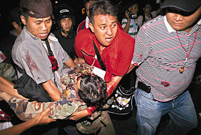 中新網5月14日電 據香港《文匯報》14日報道,泰國局勢再趨緊張,反政府紅衫軍拒絕結束示威,總理阿披實收回11月大選的和解提議。軍方昨(13日)晚出動裝甲車狙擊手封鎖紅衫軍示威地點,并截水截電,圖逼走示威者。紅衫軍營地之后傳出連串槍聲和至少4下爆炸聲,據報造成至少1死20傷,其中支持紅衫軍的陸軍少將卡迪亞頭部中槍昏迷。當局宣布擴大在中部和東北部17個府實施緊急事態法。
