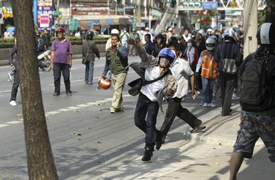 泰國軍隊在包圍紅衫軍的據點后,雙方發生嚴重沖突,軍隊使用實彈射擊。身在現場的記者稱,曼谷市中心的道路上看到燃燒的汽車,聽到槍聲、爆炸聲,天空有直升飛機盤旋,感覺如同戰場一樣。