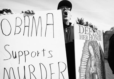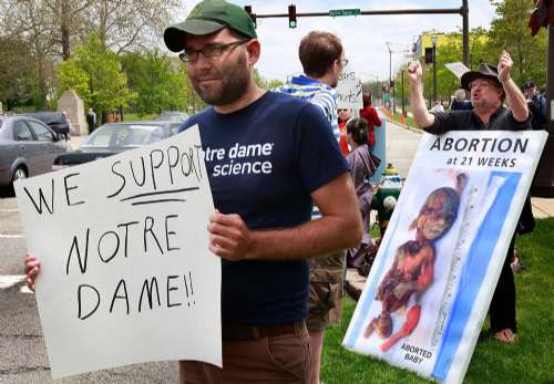 據報道,奧巴馬支持墮胎和胚胎干細胞研究立場,觸發天主教保守派人士和師生不滿。一些活動人士早已誓言干擾奧巴馬在該地的演講。