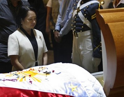 菲律賓總統阿羅約夫人也有出席,逗留了約10分鐘。有1000名官員、外國使節和商界人士參加安息彌撒,阿基諾夫人的女兒向到來的人士致謝。