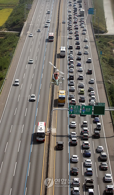 不過到了中午以后,由首爾市中心通往郊區的路段逐漸開始堵塞,車輛忽行忽停。據道路公社早前預測,至1日晚12時,將有39萬車輛利用高速公路前往地方。