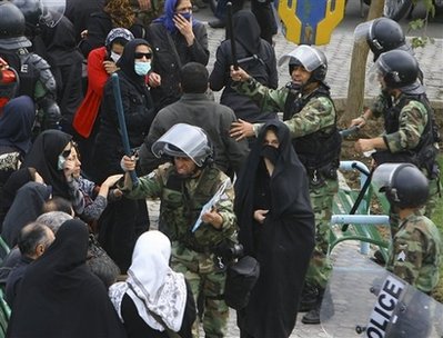反對派領導人穆薩維與卡魯比敦促支持者們走上街頭,抗議總統艾哈邁迪內賈德的政府。目擊者稱:“警方與幾百名示威人群發生沖突。示威者高喊‘打倒獨裁者!’。警方用警棍驅散示威人群。”另一名目擊者稱,警方向人群發射了催淚彈。