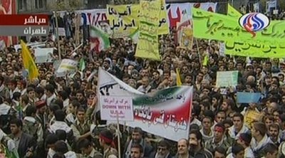 2009年11月4日,伊朗德黑蘭,成千上萬名示威者在位于市中心的美國駐伊朗大使館舊址前舉行集會。