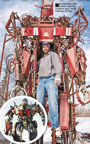 31歲的卡洛斯·歐文斯是美國阿拉斯加州瓦斯拉市的一名前美軍機械師,同時也是一名《變形金剛》系列電影的忠實粉絲。由于職業關系,卡洛斯平時特別喜歡擺弄各種機械零件,因此多年來他一直渴望造出一個《變形金剛》電影中那樣威力無比、并可任意變形的“機械戰士”。