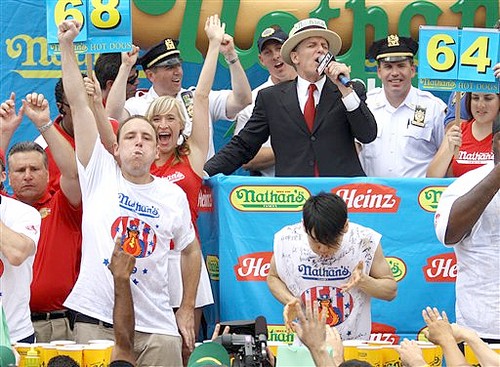 美國男子吃熱狗大賽破紀錄 10分鐘狂吞68個(圖)