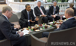 普京7日早上在自己位于郊外新奧加廖沃的官邸會見美國總統巴拉克·奧巴馬。奧巴馬7月6日抵達莫斯科進行工作訪問。