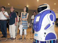 一小時的參觀時間內,機器人解說員帶領游客參觀10個展覽廳,同時還向游客介紹米開朗基羅的《創(chuàng)世紀》等復制作品。除日語外,還提供英語、中文和韓語三種外語服務,通過利用激光指針和液晶屏幕等讓解說生動易懂。