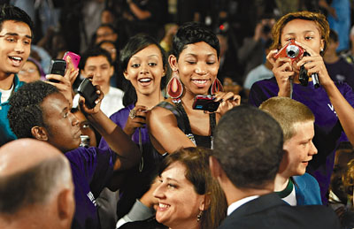 中新網9月10日電 美國總統奧巴馬8日在弗吉尼亞州阿靈頓威克菲爾德高中首次向全美中小學生發表新學年致辭,要求青少年們珍惜時光,用功學習,為自己和國家未來擔負起受教育的責任。他在答問環節又告誡大家使用社交網站Facebook時要小心,以免將來反受其害。雖然演說不含政治內容,但仍遭到反對人士的抗議,有人甚至指他在搞“個人崇拜”。