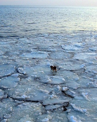 但是奇跡發生了:這只英勇而又幸運的小狗踩著浮冰,順河再往北漂流了50英里,直到河流的入海口,一艘科考船發現了它的蹤影。