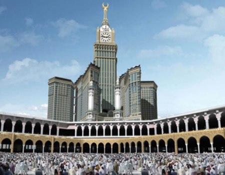 中新網4月15日電 據外電14日報道,就在世界最高建筑迪拜塔還在人們的驚嘆聲中熠熠生輝之時,不遠處的沙特麥加,又一座超高建筑也將揭開它壯麗的面紗。總高超過800米的麥加“鐘樓”建成后將成為世界第二高的建筑,它的高度是倫敦大本鐘的6倍。