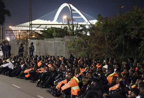約150名的保安人員從摩西馬比哈達球場附近出發,一路載歌載舞行進到繁華的市中心。隨著不斷人數的不斷加多,示威者又有秩序地返回到球場,守候在那里的數十名警察將他們控制在一片隔離區域。