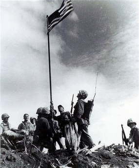 美軍勝利后于1945年2月23日在島上的折缽山上豎立了美國國旗。雅各布斯一直堅持說他就是首次豎立國旗的照片上那個背著無線電報話機的通訊員。這張照片是Leatherneck雜志的攝影師拍攝的。