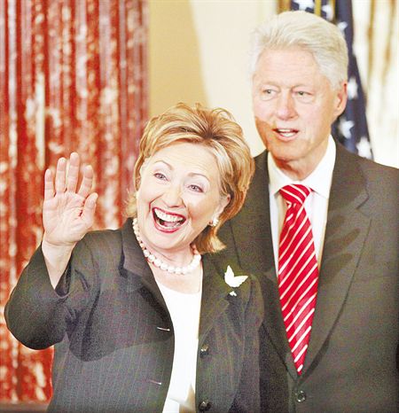 中新網2月4日電 美國新任國務卿希拉里2日在華府美國國務院宣誓就職,她致詞時刻意消遣自己和丈夫克林頓說,“我要好好感謝他,這輩子帶給我各式各樣的經驗”,而說到”各式各樣“時加重語氣,似乎暗指克林頓當年的風流韻事,引來哄堂大笑。