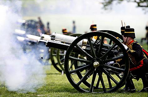 為慶祝英國(guó)女王伊麗莎白二世83歲的生日,英國(guó)皇家騎兵炮兵連在倫敦海德公園鳴放41響禮炮,來(lái)為女王慶生。這一天女王和丈夫菲利普親王待在溫莎城堡,沒有公開的行程。