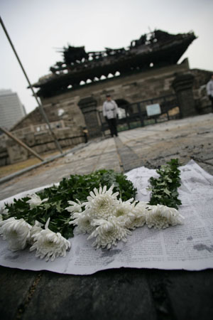 2月10日是韓國(guó)春節(jié)休假的最后一天。突如其來(lái)的崇禮門失火事件,給原本祥和的節(jié)日氣氛蒙上陰影。此后一周,痛心疾首的韓國(guó)民眾將失火現(xiàn)場(chǎng)布置成了哀悼會(huì),“國(guó)恥”的說(shuō)法不絕于耳。