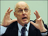 美國財政部長保爾森在國會聽證會上答辯。
