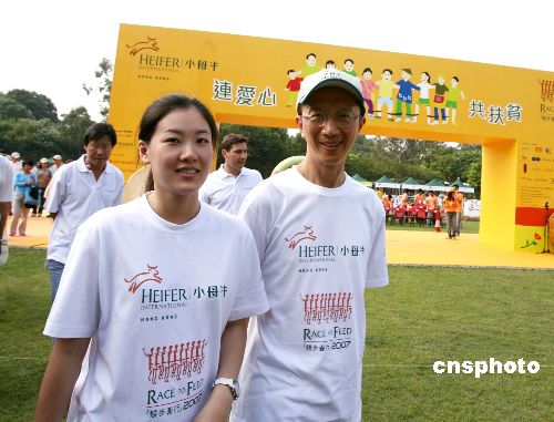 二十七日,小母牛組織香港分會主席梁錦松、小母牛組織愛心大使伏明霞夫婦參加維園舉行的小母牛[競步善行]社會各界同心助國內農民脫貧慈善賽活動,為中國慈善事業出力。小母牛是一家國際非牟利組織,通過向小型農戶提供禽畜及飼料技術的培訓,協助多國貧困家庭自力更生。中新社發 王麗南 攝