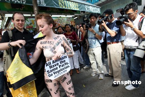 善待動(dòng)物組織女郎街頭裸體抗議肉食工業(yè)(2)