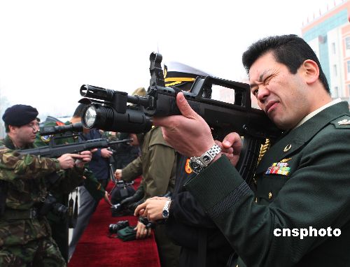 日本駐華武官參觀中國反恐特種部隊武器裝備。