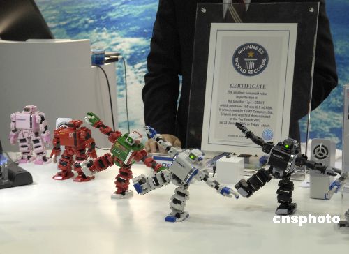 “2007國(guó)際機(jī)器人展”11月28日在日本東京國(guó)際展覽中心開(kāi)幕。在為期4天的展覽中,來(lái)自世界各國(guó)和地區(qū)的199家公司、66個(gè)團(tuán)體和機(jī)構(gòu)將在多達(dá)1071個(gè)展區(qū)中展示最尖端的機(jī)器人技術(shù)和相關(guān)產(chǎn)品。中新社發(fā) 侯宇 攝