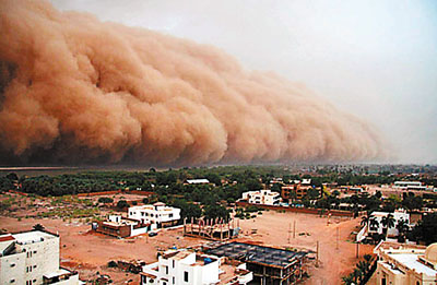 蘇丹4月時出現哈布風暴,周圍卷起強大的沙塵暴。
