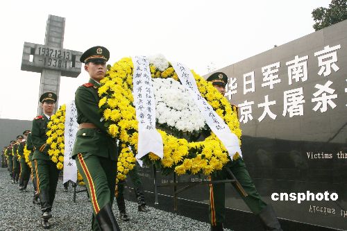 12月13日上午,南京市8000多名各界群眾代表,駐寧部隊代表,以及專程來寧的外國友好人士,在侵華日軍南京大屠殺遇難同胞紀(jì)念館集會廣場隆重舉行“悼念侵華日軍南京大屠殺30萬同胞遇難70周年暨侵華日軍南京大屠殺遇難同胞紀(jì)念館擴(kuò)建工程竣工儀式”。中新社發(fā) 韓華 攝