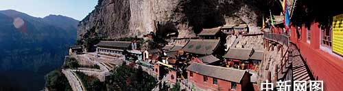 云峰寺原名抱腹寺,因建于抱腹巖而得名。始建于三國(guó)曹魏時(shí)期,距今一千七百余年。抱腹巖坐東面西,高60米,深50米,長(zhǎng)180米,分上下兩層,抱二百余間殿宇、館舍于“腹”內(nèi),容兩千年歷史文明于其間,為天下“絕無僅有”。主要景點(diǎn)有毗盧殿、玉皇閣、空王殿、五龍殿、迪公洞、鸞公洞、五龍松、鐵索嶺、《大唐汾洲抱腹寺碑》等四十余處。寺內(nèi)供奉有當(dāng)?shù)卣嫔窠橹、真佛空王佛?胀踔境菨h人第一個(gè)成佛的,塑像為包骨真身。寺內(nèi)還保存有許多唐、宋、元、明碑刻、雕塑,具有很高的文物價(jià)值。抱腹巖頂壁掛鈴,場(chǎng)面驚心動(dòng)魄,令人贊嘆叫絕。鐵索嶺是天下最古老的攀崖鐵索險(xiǎn)道。鐵索嶺的鐵索和下方云梯懸掛于唐代之前,是唐代大詩(shī)人賀知章當(dāng)年登山的一條險(xiǎn)徑。明末清初大學(xué)者傅山于崇禎十年(1637)題寫的長(zhǎng)聯(lián),清光緒三年(1877)皇帝所賜“慈云法雨”御匾,以及當(dāng)代著名學(xué)者,邑人張頷所題“抱腹棲云”的匾額,都是不可多得的珍品。巖左側(cè)現(xiàn)建有四星級(jí)的“云峰墅苑”。云峰寺已成為一個(gè)拜佛、觀光、旅游、度假的理想處所。