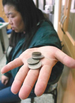 據(jù)臺灣《聯(lián)合報》報道,四十三歲的陳女昨天在警局翻遍全身口袋,僅有三十二元。“這是我全部的積蓄,要留給媽媽下一餐。”說完,陳女淚水立刻滑下。警察見狀不忍,掏腰包買面包請她吃,她抹淚紅著眼狼吞虎咽,似乎餓壞了。
