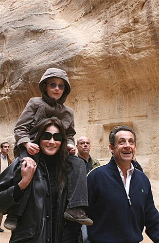 1月5日,法國總統尼古拉·薩科齊與布呂尼母子在約旦佩特拉古跡參觀。 據法國媒體1月6日報道,法國總統薩科齊2月將與新女友卡拉·布呂尼結婚。