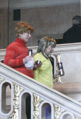 昨天8時不到,《梅蘭芳》劇組的20輛工作車就抵達了上海音樂廳。早報記者抵達時發現,在普安路上幾處公交終點站集中地,《梅蘭芳》劇組有一條特辟的停車道。11輛劇組用車整齊地停了一長排。在音樂廳金陵路正門口,負責登記外籍群眾人員的工作人員早早在門口等候。原定昨日聽戲的大場面需要上千名外籍群眾演員,但直到近10時,也只有近百名老外,所以昨日參與拍攝的群眾演員中有不少戴上金色假發的中國人。
