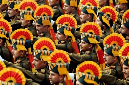 中新網1月26日電 綜合報道,印度1月26日慶祝該國國慶日,印度軍方為此舉行了盛大閱兵式。正在印度進行訪問的法國總統薩科齊參觀了這次閱兵式。
