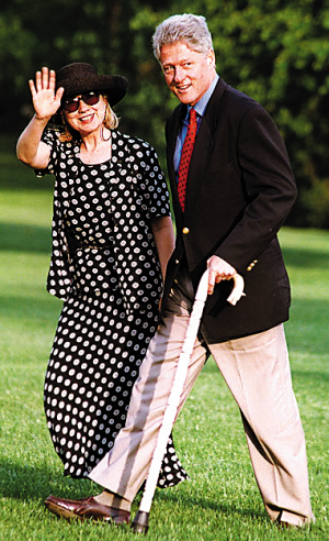 1997年,希拉里與克林頓出席一個公開場合,將圖案情意結發揮得淋漓盡致,黑底白波點連外套長裙將她幻化成一張“人肉包裝紙”,她硬撐著說:“那套衣服不是這么糟,只是較為令人眼花而已。”