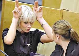 進入到統(tǒng)一俄羅斯黨后,這5名迷人的女星基本分散在不同選區(qū),憑借著廣泛的知名度和極高的人氣,她們都成為所處選區(qū)的高票獲得者。如朱洛娃所在的統(tǒng)一俄羅斯黨列寧格勒區(qū)分部,在10名競爭分部參選國家杜馬議員的黨員中,只有排名前3名的黨員才獲得參選資格,朱洛娃的得票排第2位,并最終順利當(dāng)選國家杜馬議員,目前她是國家杜馬法律委員會成員。《星期日泰晤士報》甚至強調(diào),普京與執(zhí)政黨之所以能夠大獲全勝,包括霍爾金娜等在內(nèi)的5大性感美女功不可沒。如今,霍爾金娜等5名進入國家杜馬的美女議員已經(jīng)被外界稱為“普京寶貝”。