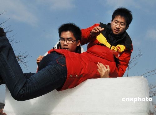 模擬人掉進冰窟,開展施救