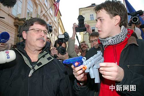 中新網(wǎng)布拉格3月16日電 在昨天下午布拉格舉行的反對美國在捷克建立中歐導彈防御系統(tǒng)的雷達基地的示威游行中,捷克示威民眾要求美國駐捷克大使館向美國政府轉(zhuǎn)交他們尋獲的所謂“伊朗大規(guī)模殺傷性武器”的證據(jù),而這些證據(jù)實際上只是一些塑料兒童玩具。示威者用一種特殊方式嘲笑和譏諷美國政府尋找戰(zhàn)爭借口如同兒戲,入侵伊拉克還想打伊朗。