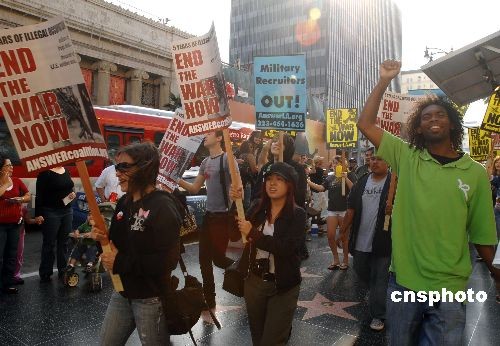 組圖:好萊塢“星光大道”上演反戰(zhàn)游行(2)