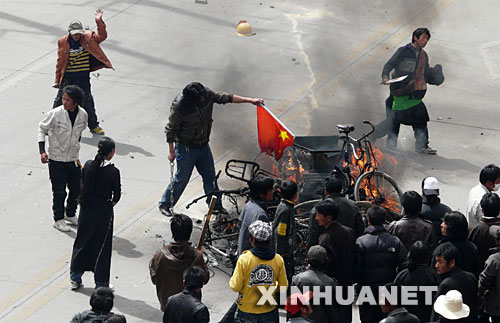 3月14日,一群不法分子在西藏自治區首府拉薩市區的主要路段實施打砸搶燒,焚燒過往車輛,追打過路群眾,沖擊商場、電信營業網點和政府機關,給當地人民群眾生命財產造成重大損失,使當地的社會秩序受到了嚴重破壞。事后查明,這天,不法分子縱火300余處,拉薩908戶商鋪、7所學校、120間民房、5座醫院受損,砸毀金融網點10個,至少20處建筑物被燒成廢墟,84輛汽車被毀。有18名無辜群眾被燒死或砍死,受傷群眾達382人,其中重傷58人。拉薩市直接財產損失達24468.789萬元。